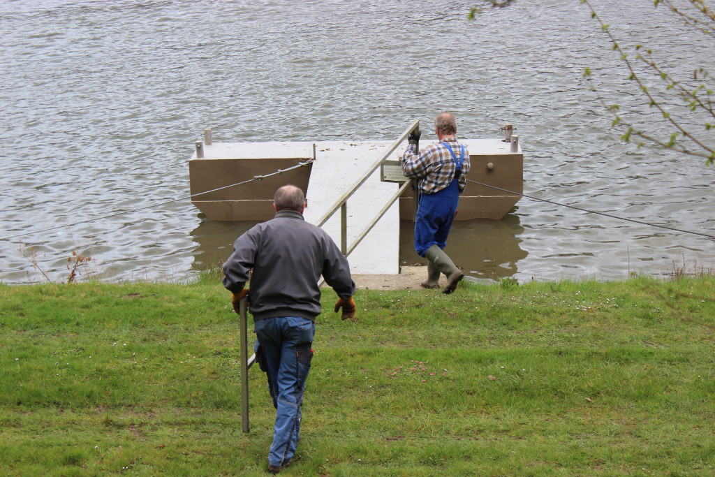 Zunächst wurde das Gelände auf Vordermann gebracht, einige Wartungsarbeiten erledigt und schließlich dann die Stege zu Wasser gelassen.