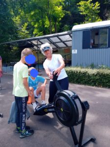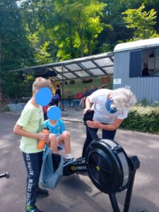 Auch in diesem Jahr organiseren viele Helfer des VfL Traben-Trarbach 1861 e.V. die beliebte Ferienfreizeit für Schüler im Ort. Neu war ein Tag im Hafen Traben. Dort trafen die ca. 60 Kinder Vertreter der Blaulicht-Fraktion (hiesige Feuerwehr, Wasserschutzpolizei) sowie die Sportarten Segeln und Rudern unseres Clubs. Während Feuerwehr und Wapo ihre Arbeit anschaulich auch mit ihren Booten und Geräten erläuterten, war bei uns sportliches Mitmachen angesagt: Die Ruderer hatten zwei Ruder-Ergometer aufgebaut, auf denen die Mädchen und Jungen die Ruderbewegung auf festem Untergrund üben konnten. Doris und Elisabeth betreuten die dort Aktiven. Am Steg lag ein Zweier, in dem Boryana jeweils ein Kind mit aufs Wasser nahm. Beide Übungen waren für alle eine tolle Erfahrung. Für die Segelabteilung brachte Jürgen W. den jungen Menschen wichtige Knoten bei – jede und jeder, die und der das schon mal gelernt hat, weiß, wie viel “blindes” Üben es braucht, bis die Knoten sicher angewandt werden können. Das Beherrschen der Knoten ist für sicheres Segeln notwendig, vor allem für das Vertäuen der Boote und Schiffe. Nicht nur die Kinder hatten ihre Freude, auch einige erwachsene Betreuer lernten eifrig mit. Tanja sorgte für gute Stimmung bei den Kleinen.
