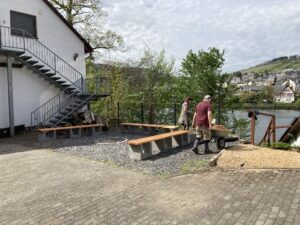 Bei bestem Wetter fanden sich am 11. April 2026 sehr viele Mitglieder aller Abteilungen am Woog zum Frühjahrsarbeitsdienst ein. Schorsch Huesgen hatte wie bereits in den Vorjahren eine Liste aller anstehenden Aufgaben erstellt – dieses Mal eine besonders lange. Auch Werkzeug hatte er bereitgestellt und wies alle in ihre Arbeiten ein. Einige Mitglieder hatten auch eigenes Gerät wie Freischneider im Einsatz. „Viele Hände – schnelles Ende“ bewahrheitete sich deutlich. Fast alle Aufgaben wurden erledigt, nur der Fahnenmast harrt noch seiner „Sanierung“. Und für weitere Arbeitseinsätze wurden neue Bedarfe ermittelt. Als besonders gelungen sind die Sitzecke und die Feuerstelle zwischen den Hallen zu bezeichnen, die von fleißigen Kanutinnen und Kanuten errichtet wurde – samt neuer Bepflanzung.