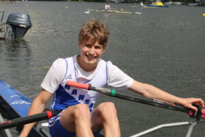 In der Bootsklasse Jungen-Einer 14 Jahre wurden 55 Meldungen abgegeben, damit die mit Abstand umfangreichste Meldegruppe. Sonntags wurde alle Rennen bei vier Startbahnen über 1.000 m ausgetragen. Juri startete in seiner Gewichtsklasse Leichtgewicht und konnte seine drei Gegner souverän auf Distanz halten. Er überquerte mit über drei Längen auf das nachfolgende Boot als Sieger die Ziellinie.